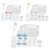 What's in the box2 x 150ml bottles fitted with 0-6 months small hole teats2 x 300ml bottles fitted with 0-6 months Medium hole teats1 x Orthodontic Soother1 x Bottle Brush and Teat cleaner1 x Sterilising Soother box