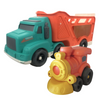 This blue car carrier is transporting four construction vehicles to the contratuction site. Your little one will have the city built up in no time!
